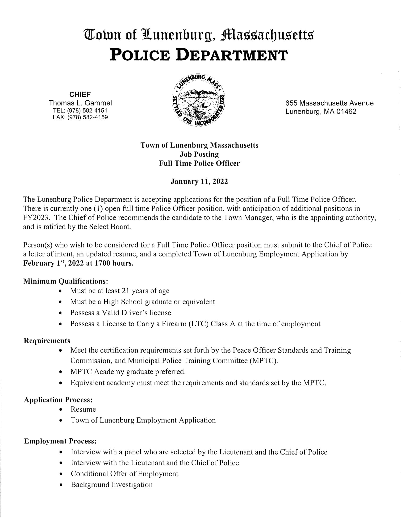 Lunenburg Police On Twitter Employment Opportunity Https T Co 3hgca1fs5p Twitter