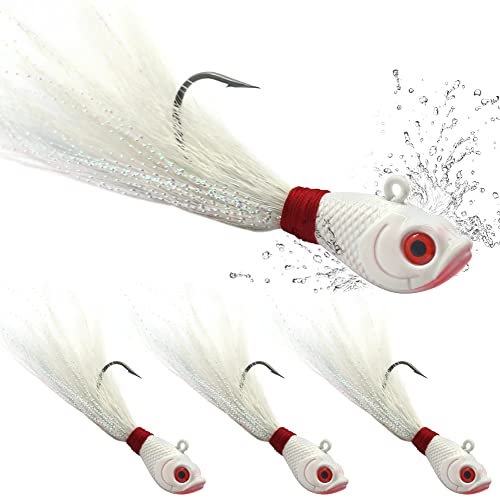 Bucktail Jigs Saltwater Hair Jigs Head Flukes Fishing Lures Assorted Kit For Striped Bass Walleye Snook Rockfish Redfish 1 4oz 1 2 Oz 1oz 2 Oz White 3 Pack 1 2oz 14g Walmart Com
